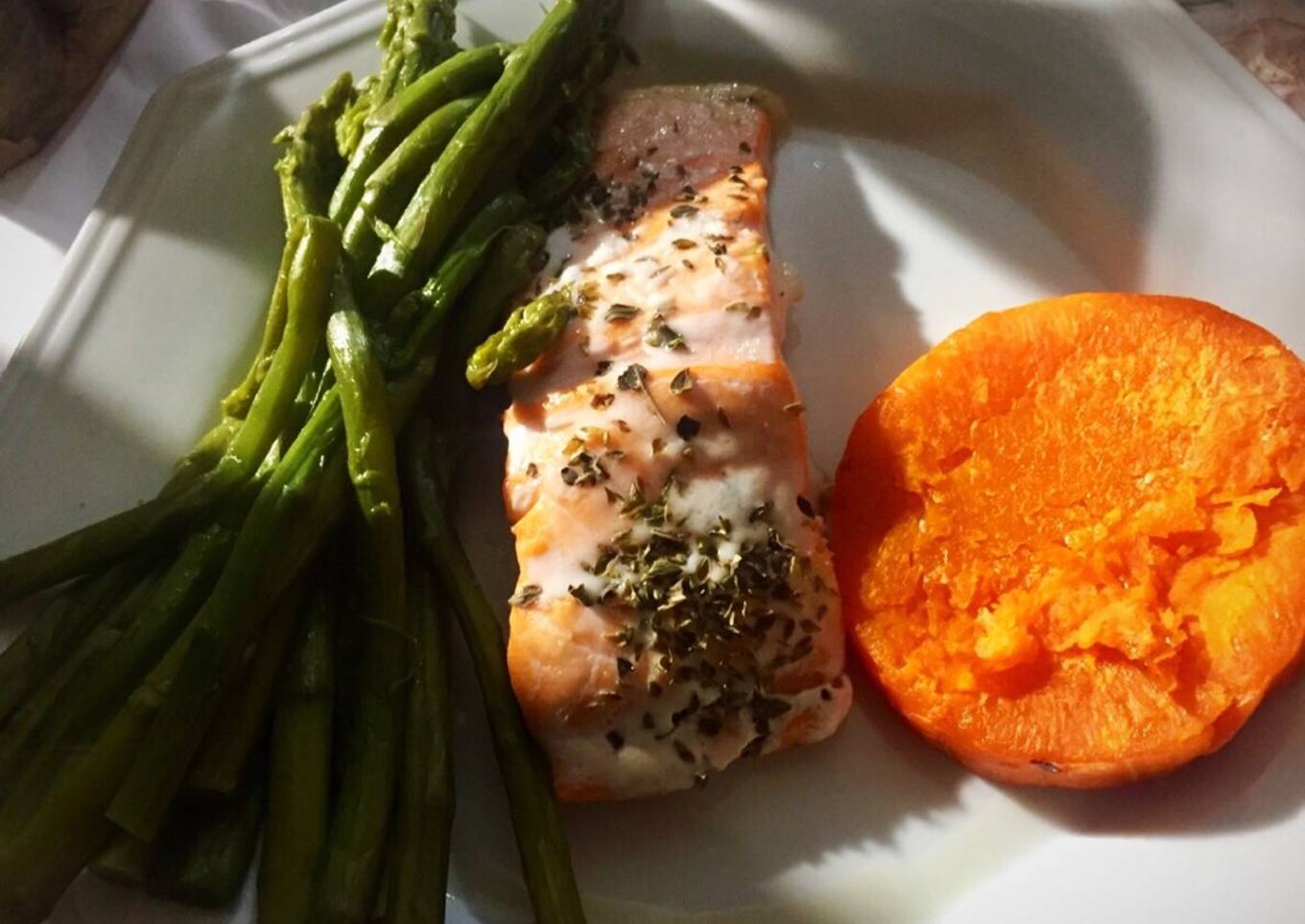 Hey everyone, I hope you are having an amazing day today. Today, we're going to prepare a special dish, Salmón al horno con espárragos y calabaza. Light. One of my favorites. For mine, I'm gonna make it a little bit tasty. This will be really delicious.