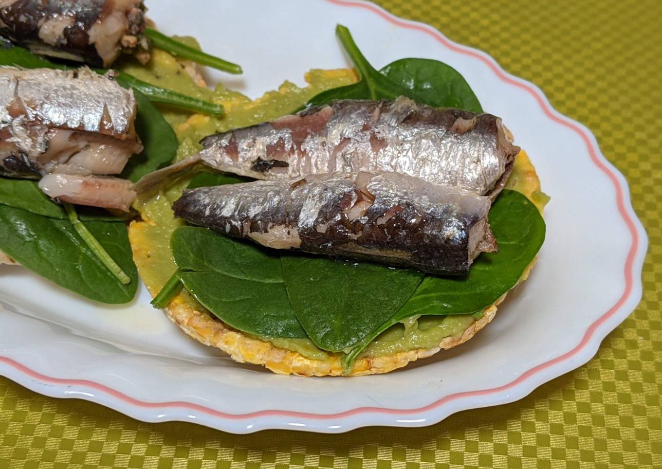 - Cubrimos con unas hojas de espinacas baby, ponemos las sardinas bien escurridas encima y listo, a disfrutar del manjar!